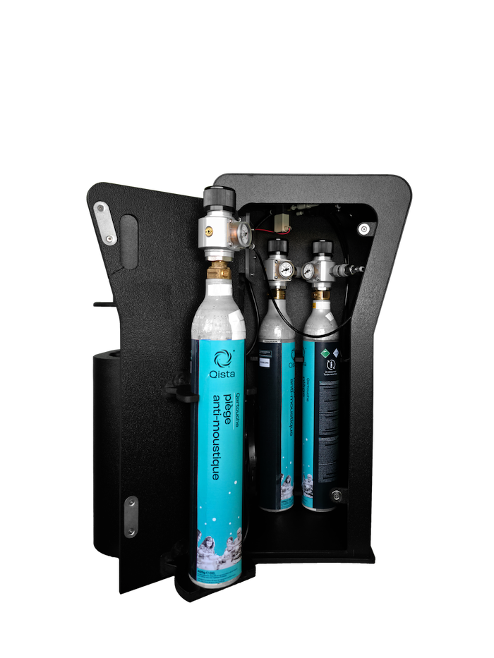 Innovation Made in France – we unveil our new generation eco-friendly mosquito trap: compact, lightweight, and easy to use. Powered by CO₂ and an oflactive lure, it reduces bites by nearly 90%. Thanks to 425g CO2 bottles, which have the advantage of being small and easy to handle, enjoy one month of autonomy per refill – and up to three months of continuous use.